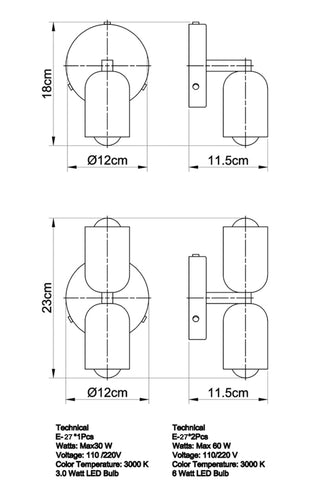 - H18 — Height: 7″(18 cm), Diameter: 4.7″(12 cm).